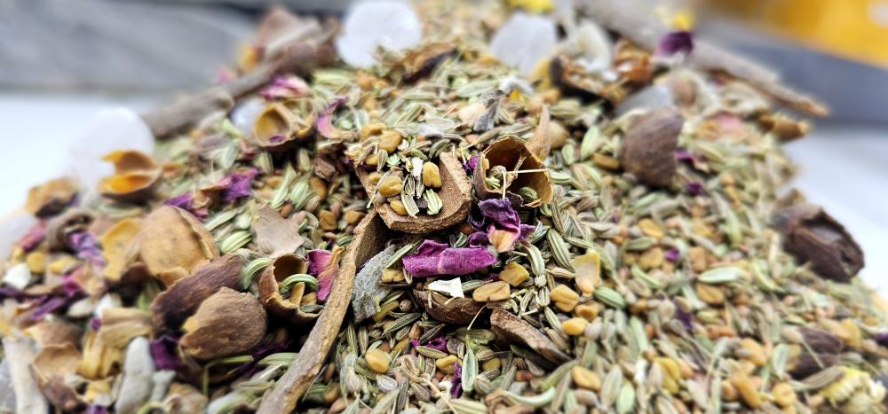 - أعشاب مثل الكمون، اليانسون، الشمر، حبة البركة، الحلبة: تساهم هذه الأعشاب في تحسين الهضم، وتخفيف الغازات والانتفاخ، وتهدئة الأعصاب.