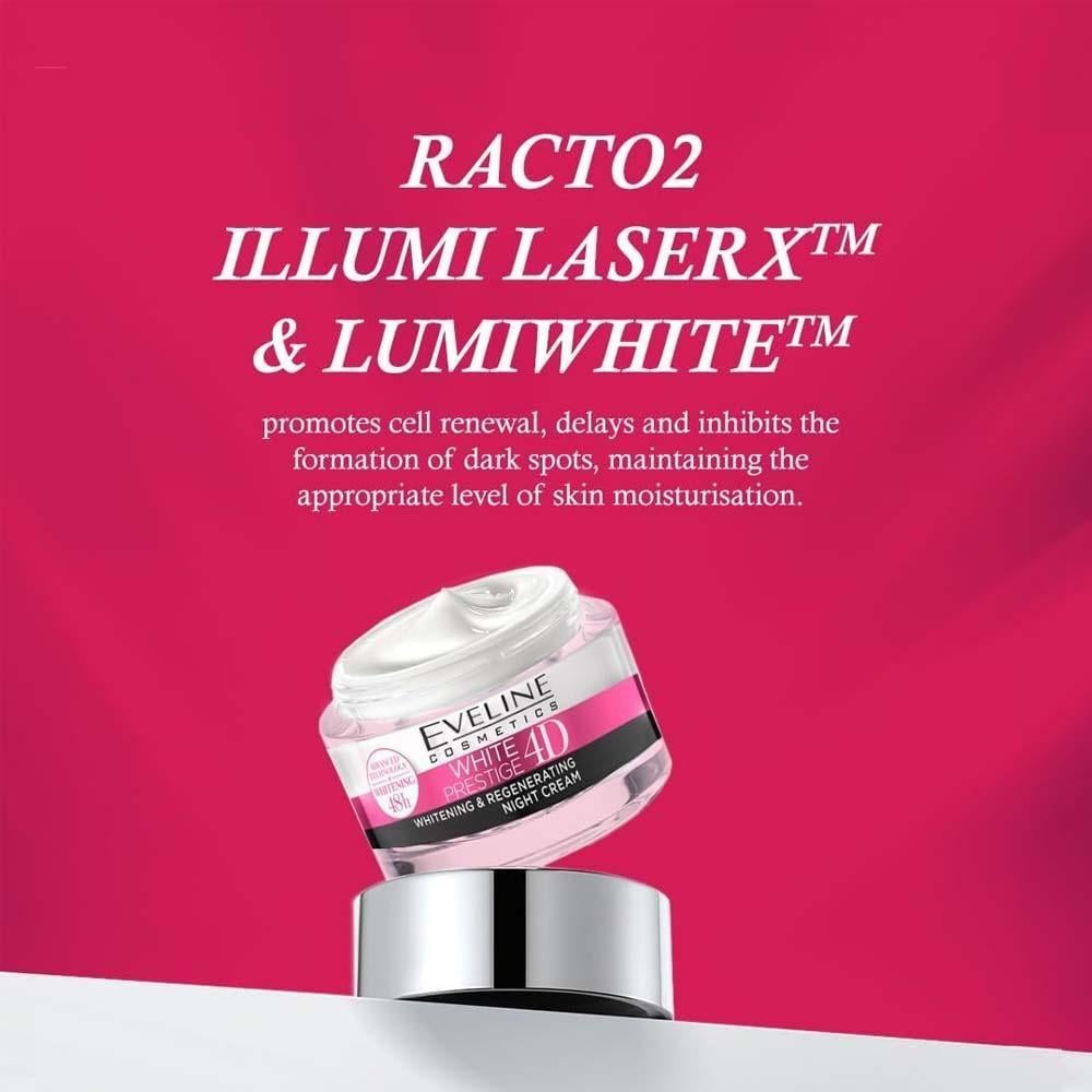 كريم تفتيح مكثف ليلي وايت برستيج 4D كريم ليلي متقدم مصمم لتحسين مظهر البشرة أثناء النوم. يستهدف الكريم تقليل البقع الداكنة والتصبغات، ويعمل على توحيد لون البشرة وإضفاء إشراق طبيعي عليها. بفضل تركيبته الغنية بالمواد الفعالة مثل حمض الهيالورونيك، ومستخلصات النباتات الطبيعية، والفيتامينات، فإنه يغذي البشرة بعمق ويرطبها، مما يعزز من تجديد خلاياها ويجعلها تبدو أكثر نضارة وحيوية.